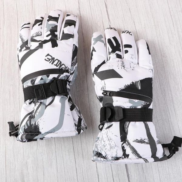 1 pair winter thickened ski cycling waterproof windproof warm for men (grey and white graffiti, size)1