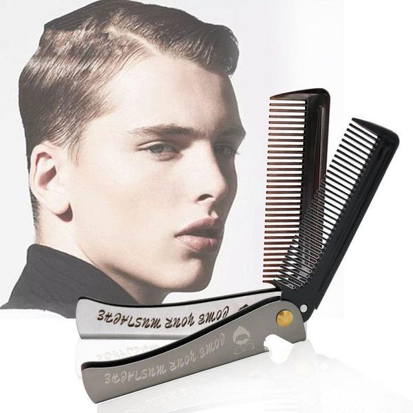 1 pcs mens womens beauty handmade folding pocket clip hair moustache beard stainless steel comb for men styling tools wmtmal, Silver