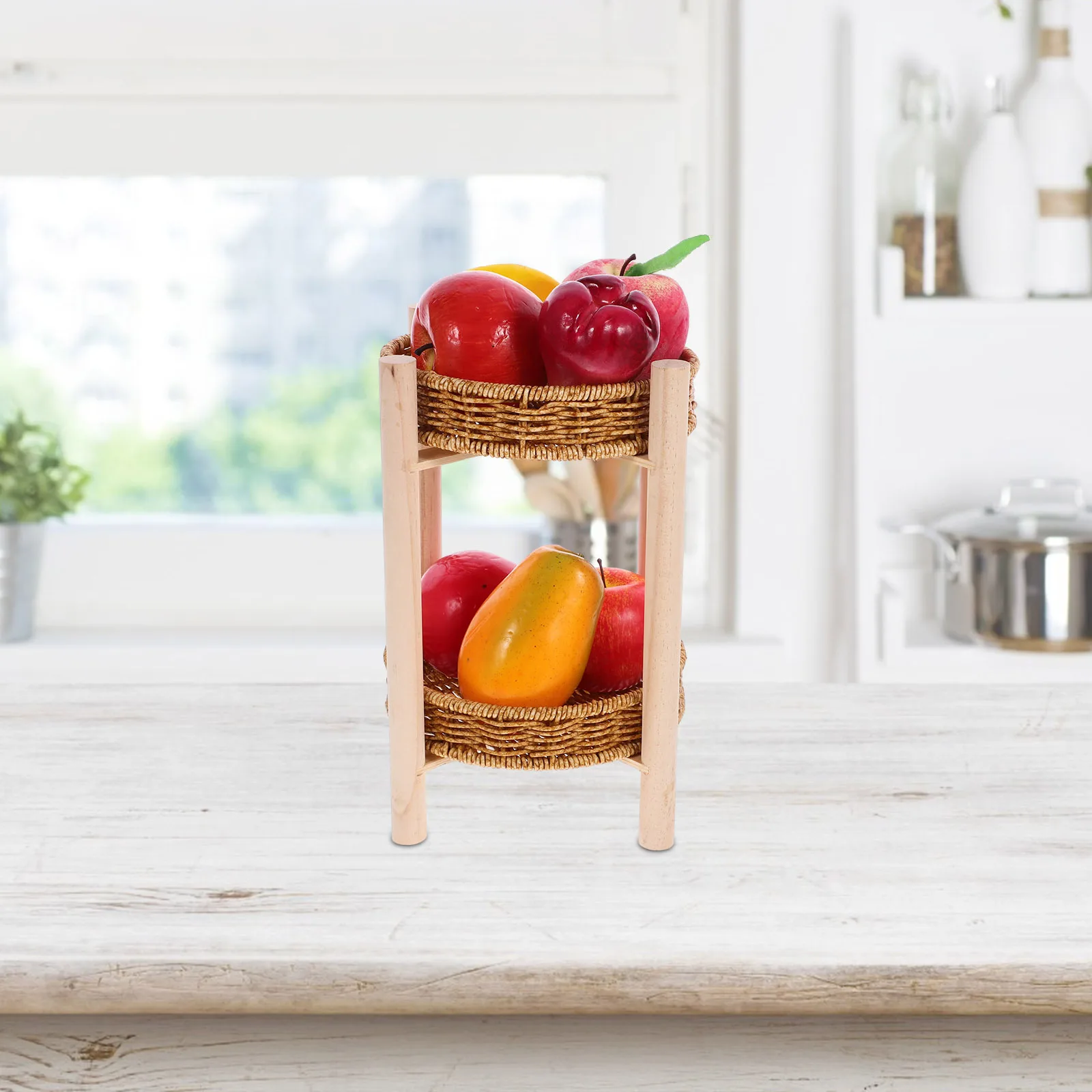 1 set Double Layer Fruit Tray Hand Woven Storage Basket Multi-Function Sundries Container Simulation Rattan Weaving Organizing