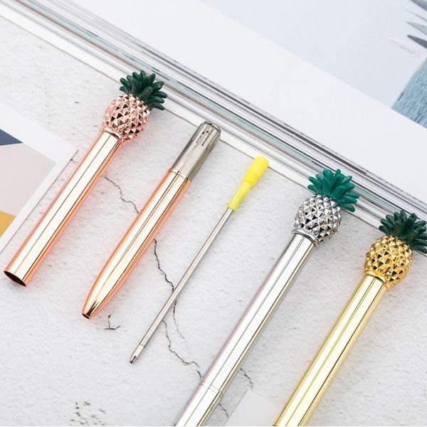 1.0mm metal pineapple ballpoint pen signature writing tool kawaii stationery school office supplies student gift pens, Blue;orange