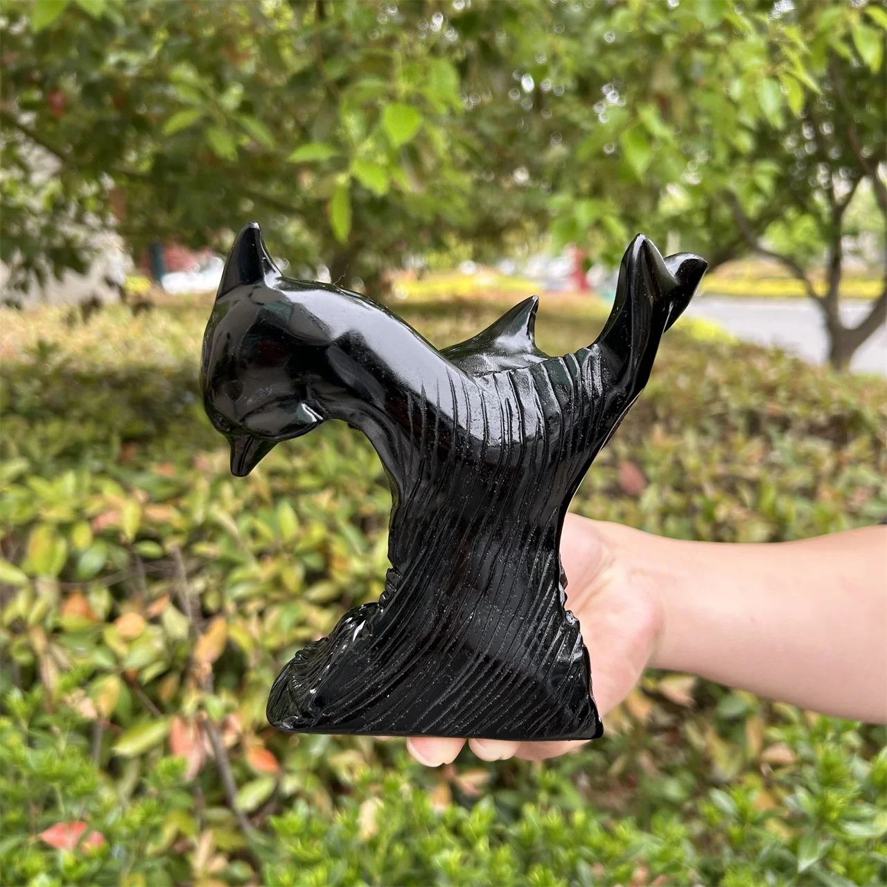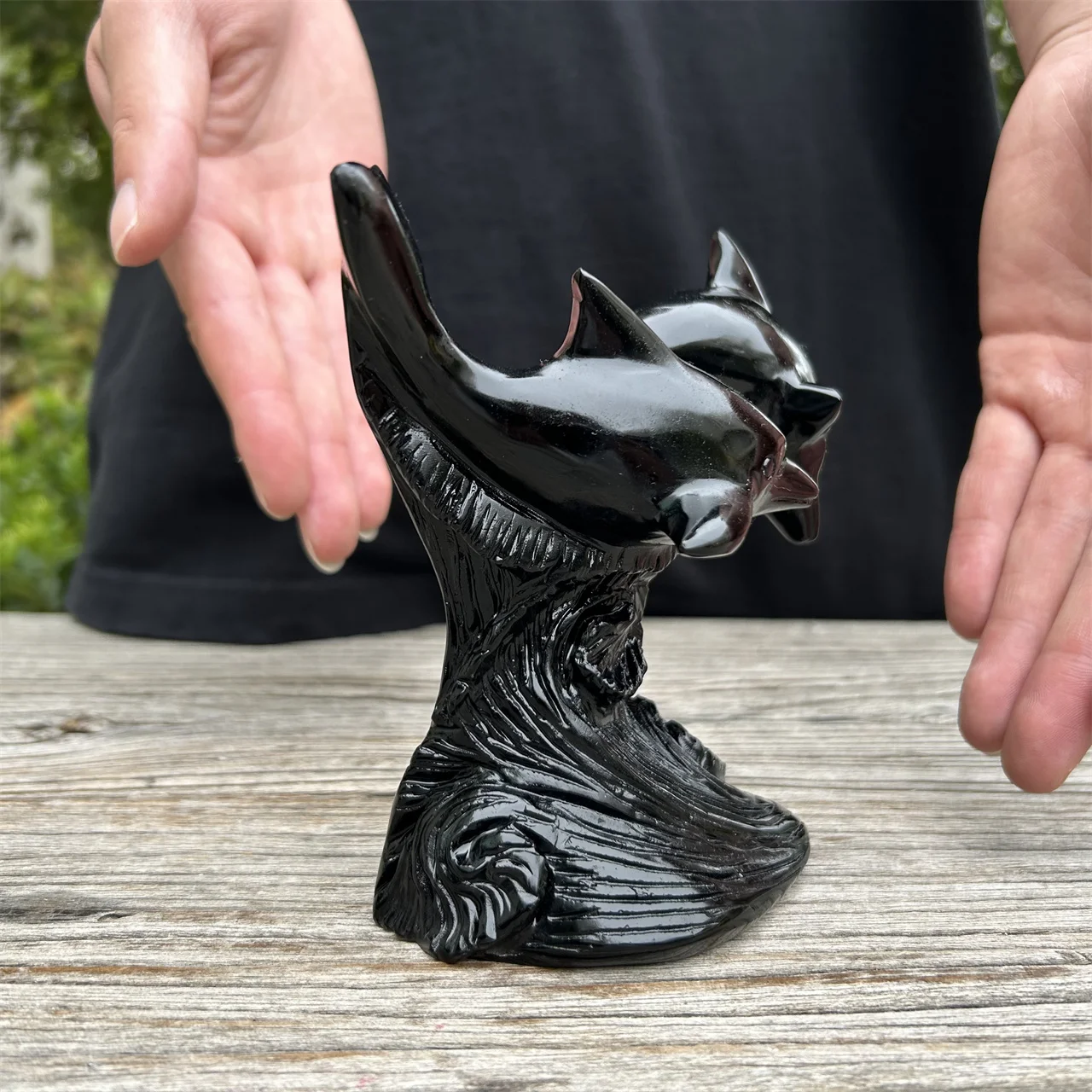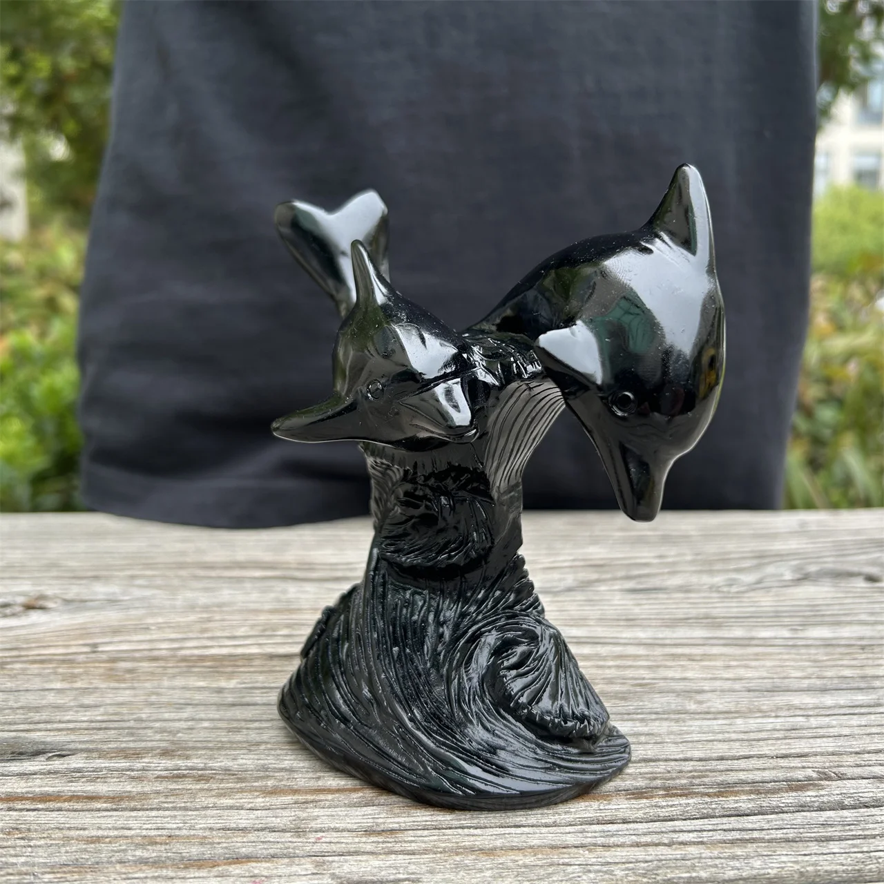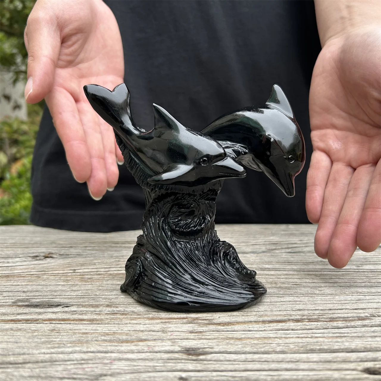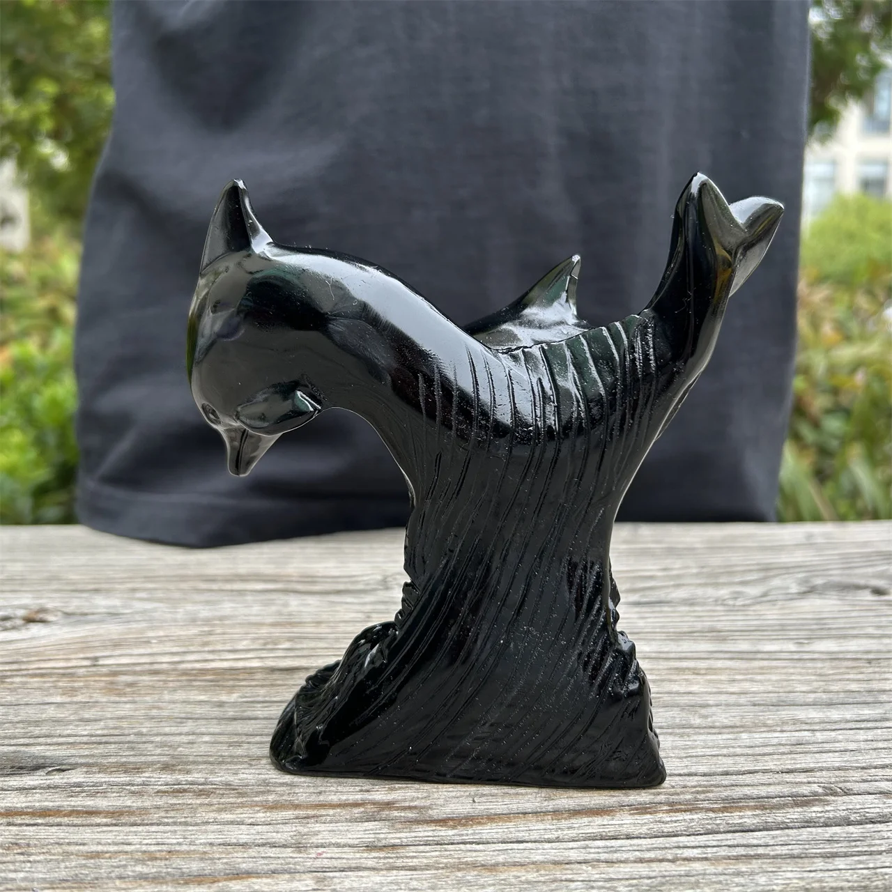 1.3LB 5,2 "ручная резная природная черная Обсидиановая кварцевая статуя дельфина с кристаллом
