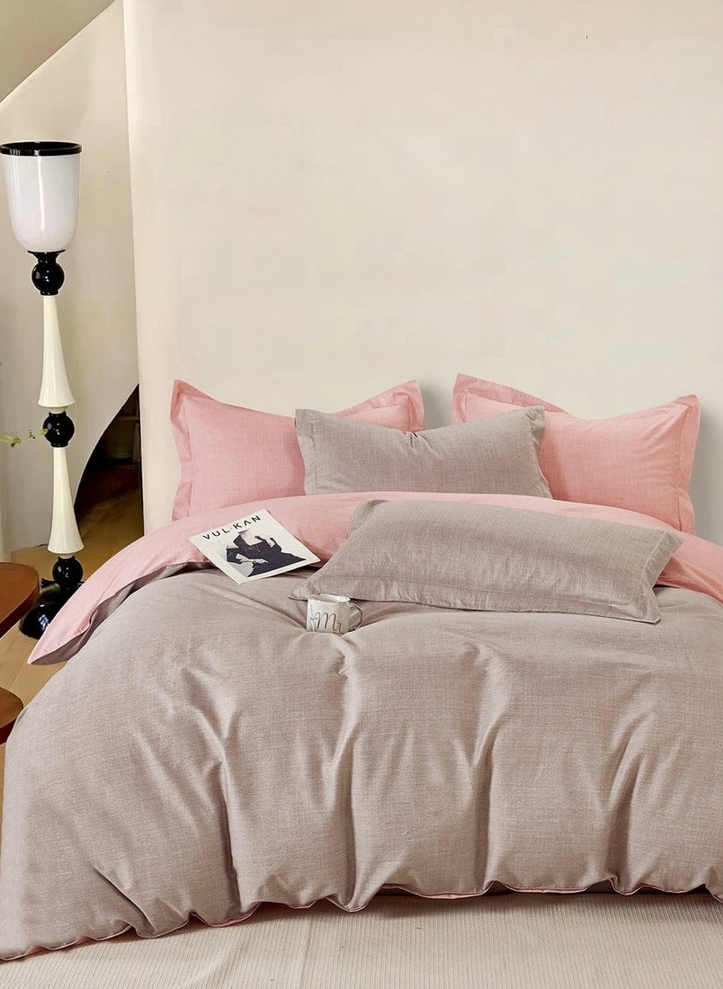 1.5-спальный, сатин, пододеяльник 150x210 см, простыня 150x225 см, наволочка 70x70 см, бежевый/розовый