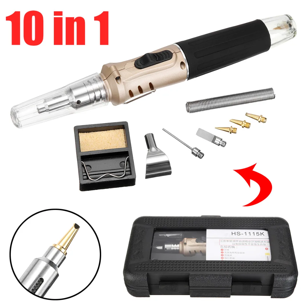 10в1 HS-1115K Газовый паяльник бутан беспроводной сварочный фонарь комплект зажигание бутан газовый паяльник