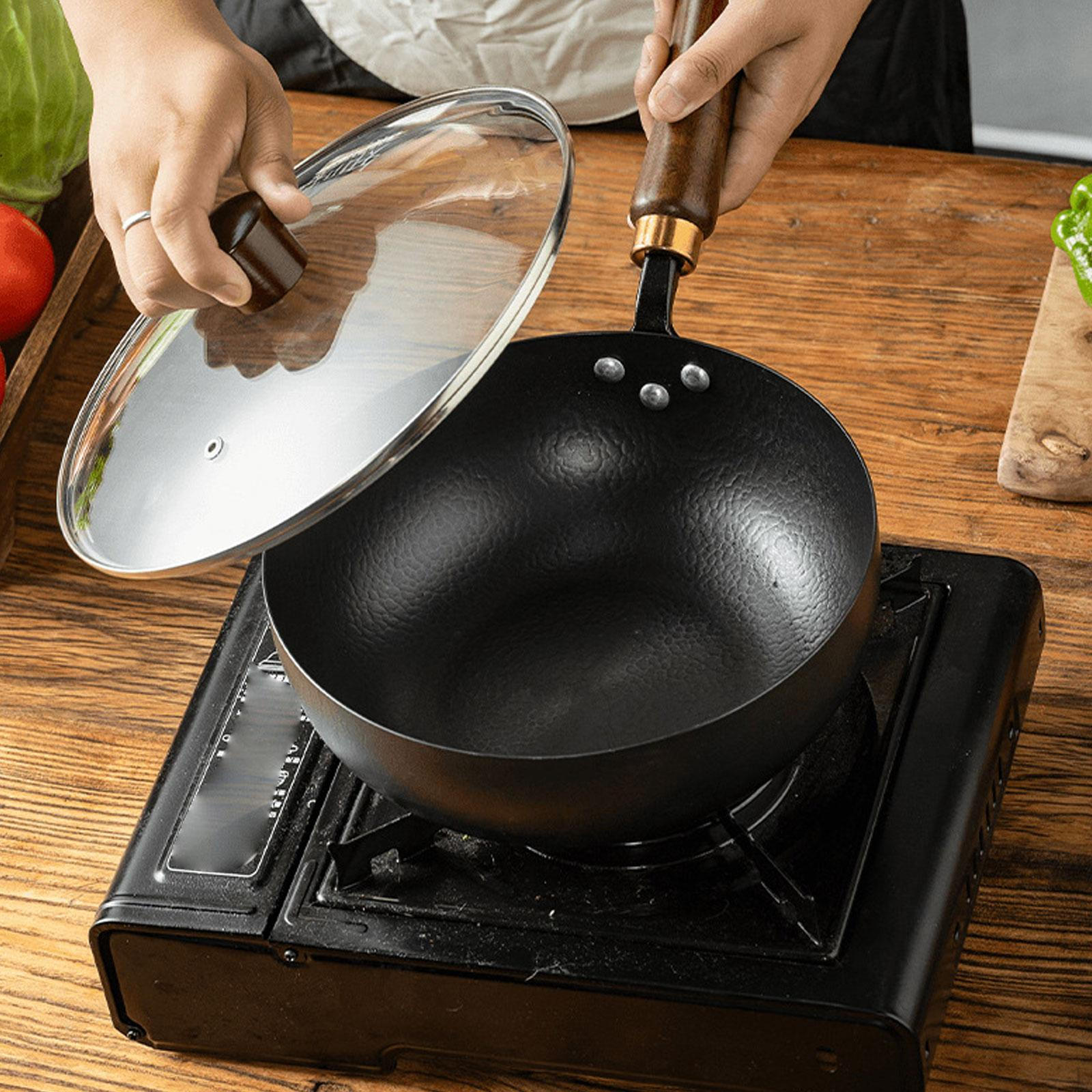 10 Железная китайская сковорода Wok с крючком для подвешивания, плоское дно для отеля with Lid