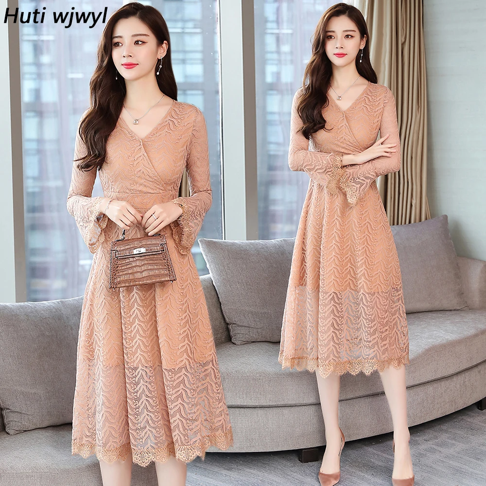 Winter Thickened Women's Clothing Patchwork Small Floral V-neck Long Sleeved Dress for Commuting Flowing and Comfortable Dress