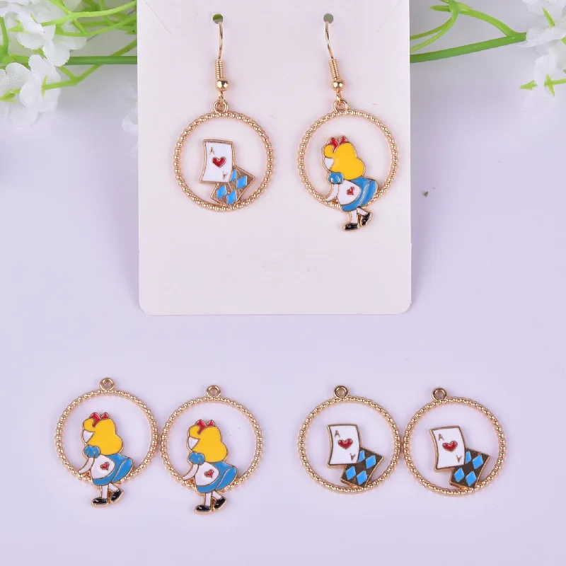 10 звёзд, металлические подвески в виде сердца, Алисы, покера, русалки для самостоятельного изготовления сережек, ювелирных изделий, аксессу...