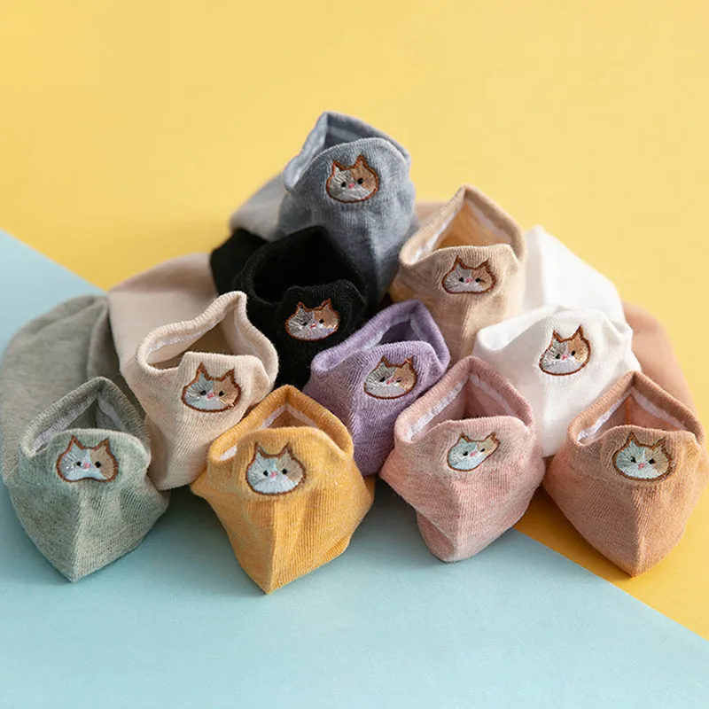 1Pairs Fashion Socks Women 2022 New Spring Cotton Color Novelty Girls Cute Cat Embroidery Casual Funny Ankle Socks