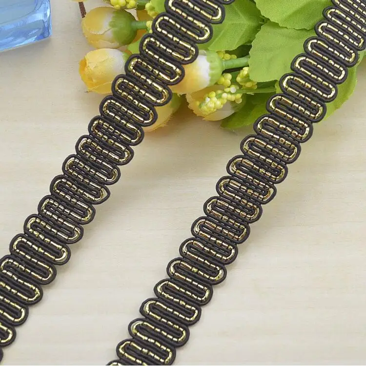 10 метров элегантная S-образная кружевная косичка, Золотая аппликация, Черная кружевная отделка, лента змеиного типа, сшивание, обрезка, изги...