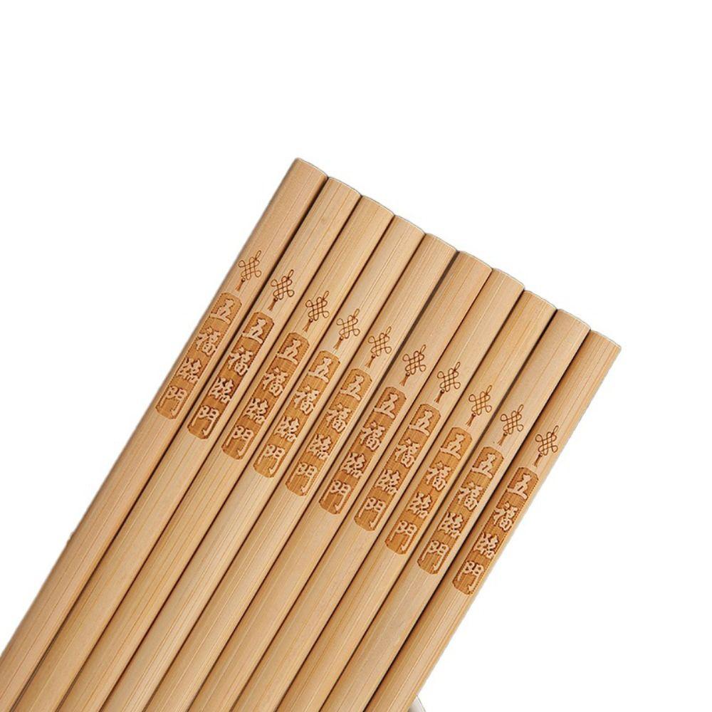 10 пар палочек для еды из бамбука без лака, нескользящие, без воска, с гравировкой, устойчивые к высоким температурам, палочки для еды для суши и лапши