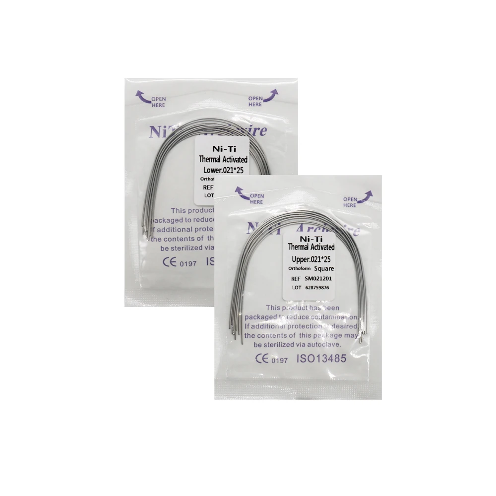 10 упаковок, 100 шт, Ортодонтическая термоактивация, квадратный провод (5 упаковок, верхняя + 5 упаковок, нижняя)
