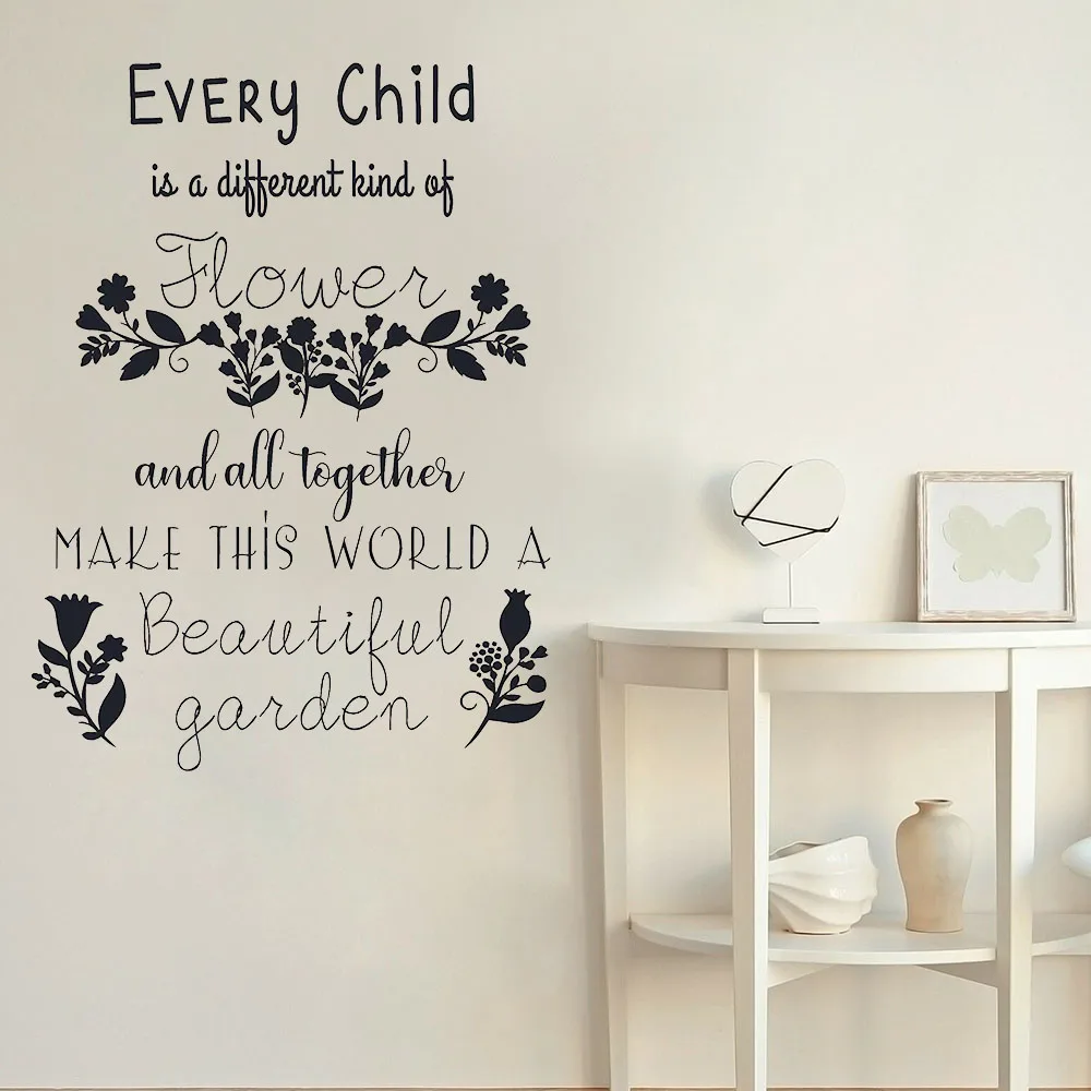 Art Lettering Wall Decal Every Child Is A Flower Quotes Classroom School Nursery Kids Room Interior Decor Vinyl Stickers Q466