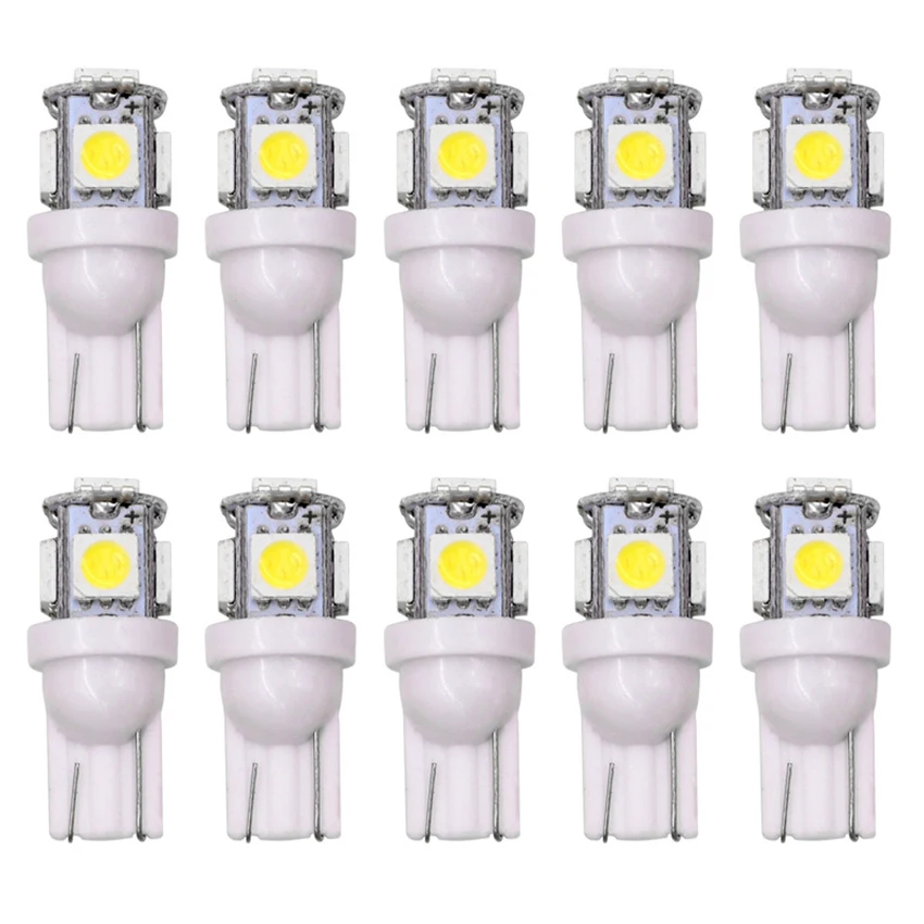 10 шт., Автомобильные светодиодные лампы T10 W5W 5050 5SMD 168 194 192 DC 12 В