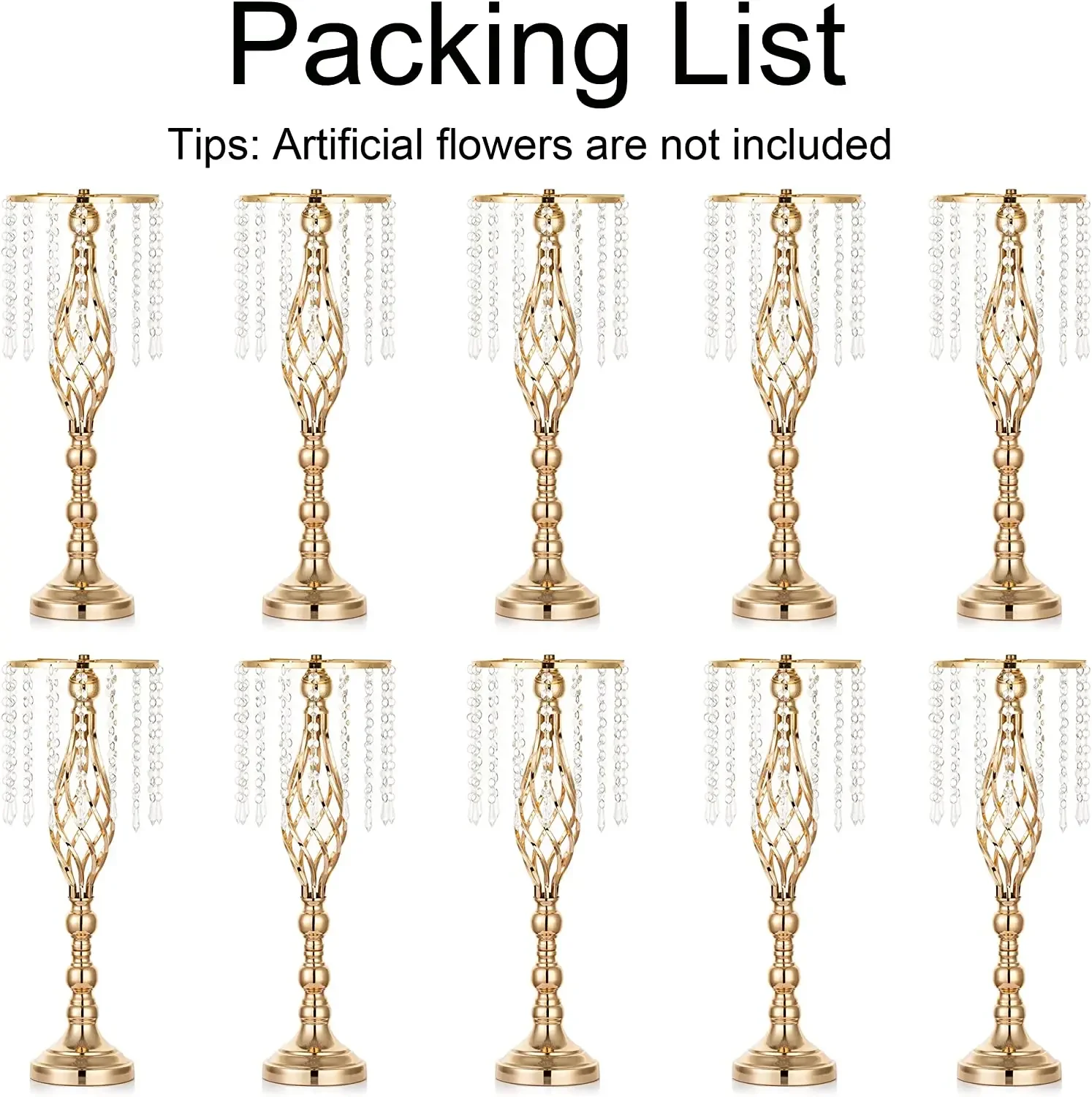 10 шт. Золотая ваза для свадьбы, искусственные украшения с кристаллами люстры, Цветочная ваза, свадебное искусство