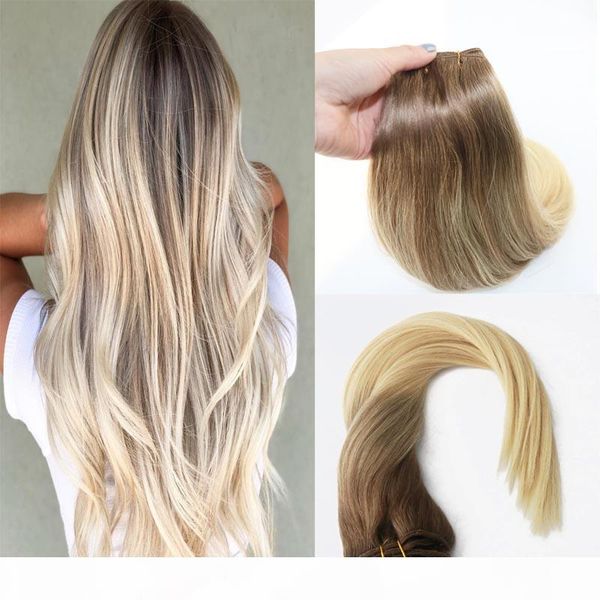 balayage ombre hair extensions remy human hair of clip in hair extensions color brown to blonde #8 to #613 silky straight 120g, Black