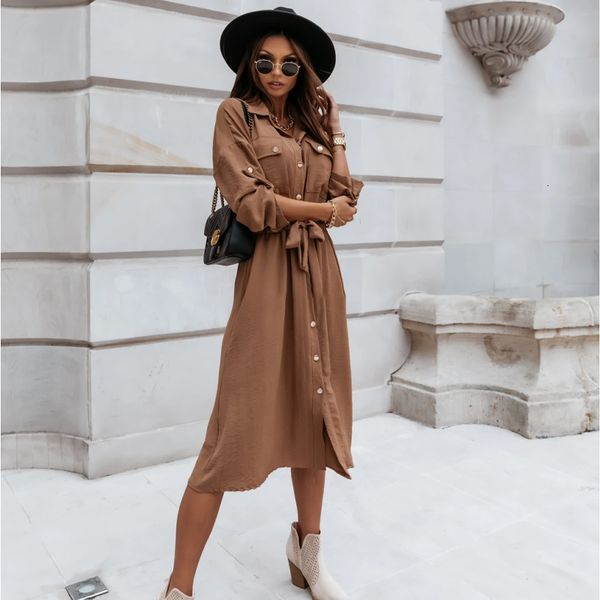 2021 new women fashion shirt elegant turn-down collar long sleeve pocktes single buttons drawstring mid casual solid adgk, Black;gray