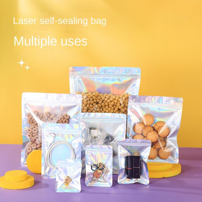 10 шт. Полупрозрачные многоразовые лазерные пакеты с застежкой-молнией Голографическая радужная сумка Ювелирные изделия Ожерелье Косметика Пластиковый упаковочный мешочек
