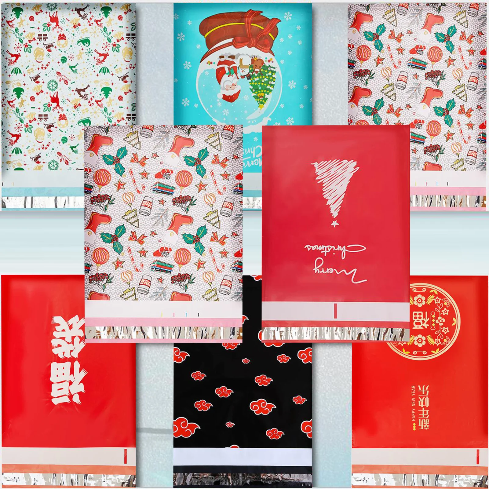 10 шт. Счастливого Рождества, поли-конверты, конфетные сумки для бизнеса, самоуплотнения, рождественские подарки, украшения, доставка, почтов...
