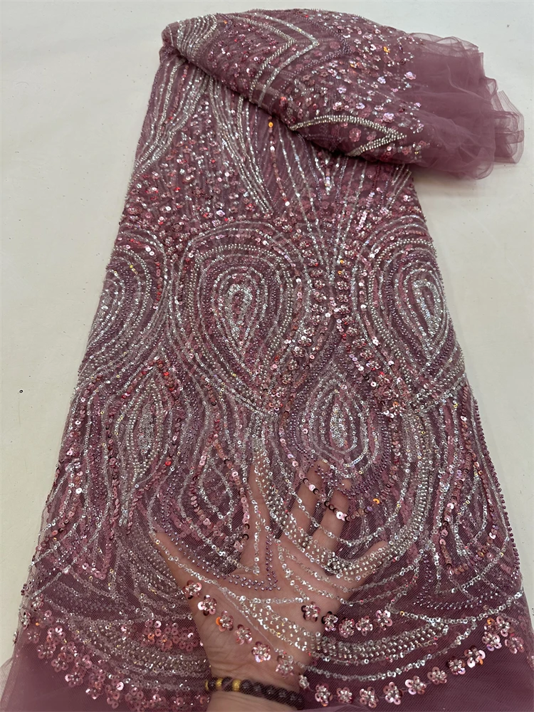2024 Luxury African Handmade Beads Sequins Lace Fabric High Quality French Groom Embroidery Beads Nigerian Lace For Sewing Rf