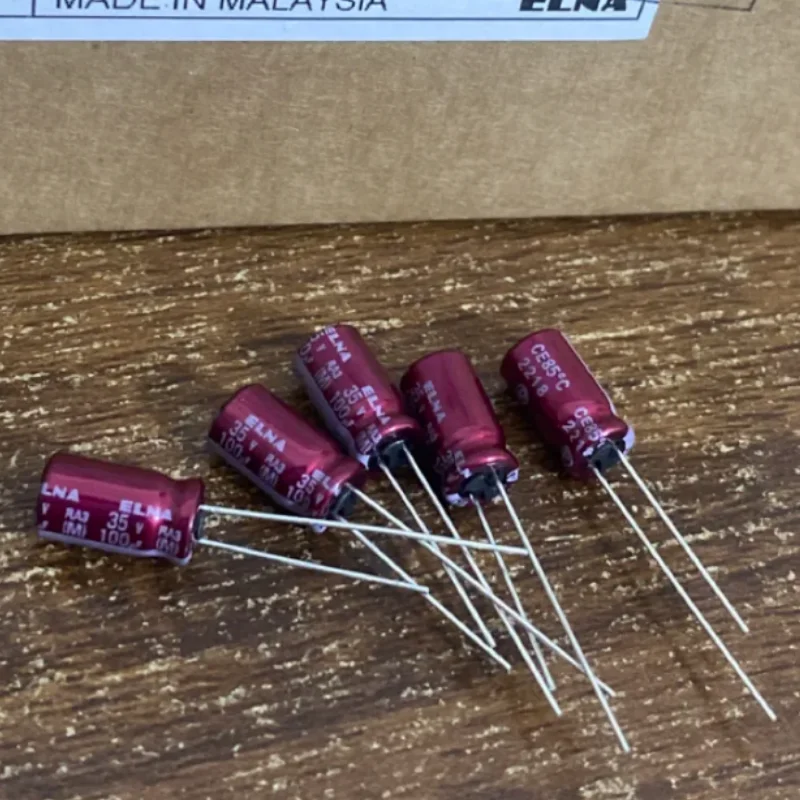 10 шт., аудио конденсатор ELNA 100 МКФ 35 в 35 в 100 мкФ 6x11 RA3, фиолетовый, красный, Халат