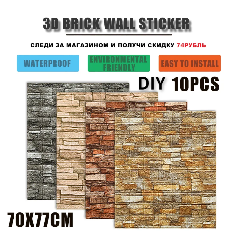 10 шт., водонепроницаемые 3D-обои с имитацией кирпичной стены и мрамора