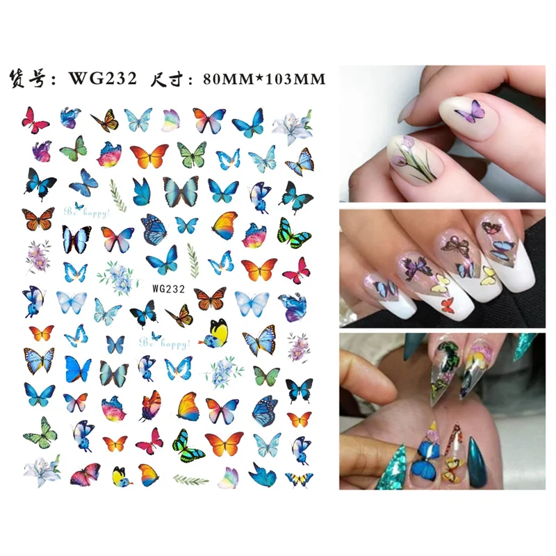 10 шт., декоративные наклейки для ногтей в виде бабочек, цветов, животных