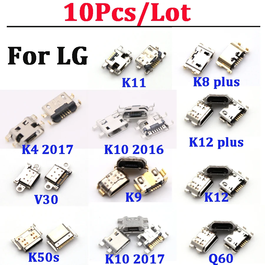 10 шт. для LG K50S V30 V40 Q60 K8 K12 Plus K9 K11 K10 K4 2017 K10 2016 разъем для зарядки через usb разъем док-станции разъем данных зарядное устройство порт