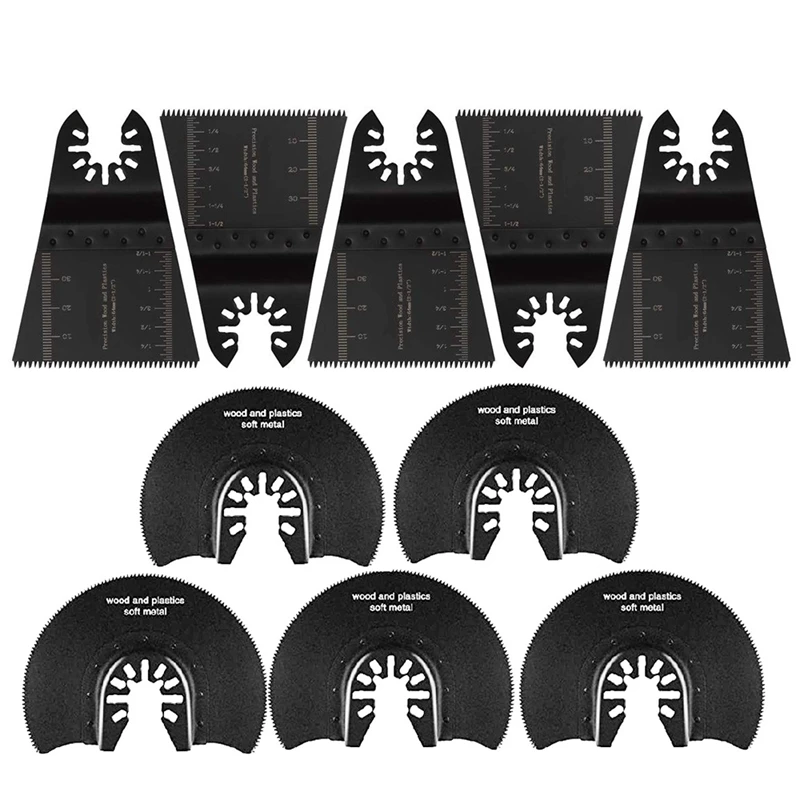 10 шт., древесные Осциллирующие многофункциональные быстросъемные полотна пилы, Осциллирующие полотна пилы (5 шт. в ширину + 5 шт. полукруглых)