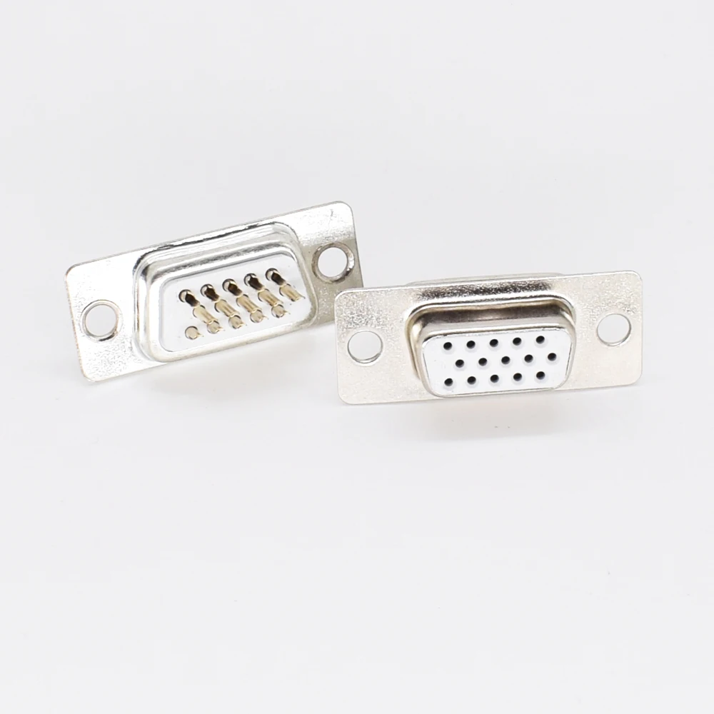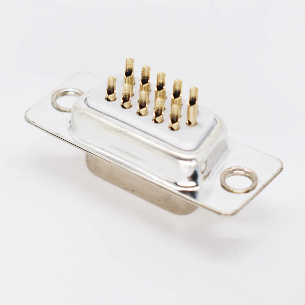 10 шт., золотистые контакты, 15 контактов, 3 ряда, разъем D-Sub для пайки шасси, разъем RS232