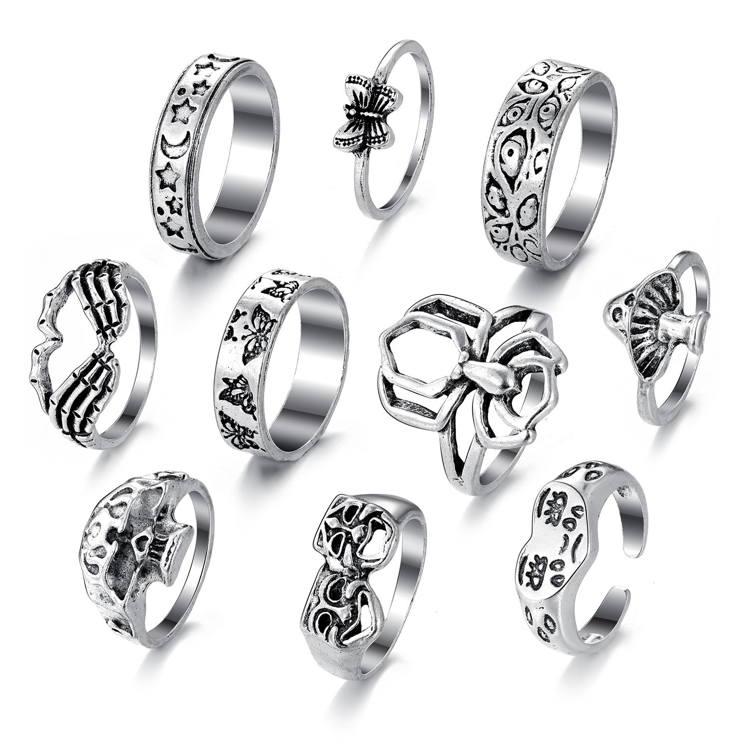 10 шт./компл. Европейская и американская мода в стиле ретро веерообразная капля воды, звезда, бабочка, женское кольцо, комплект из 10 шт. серебряный
