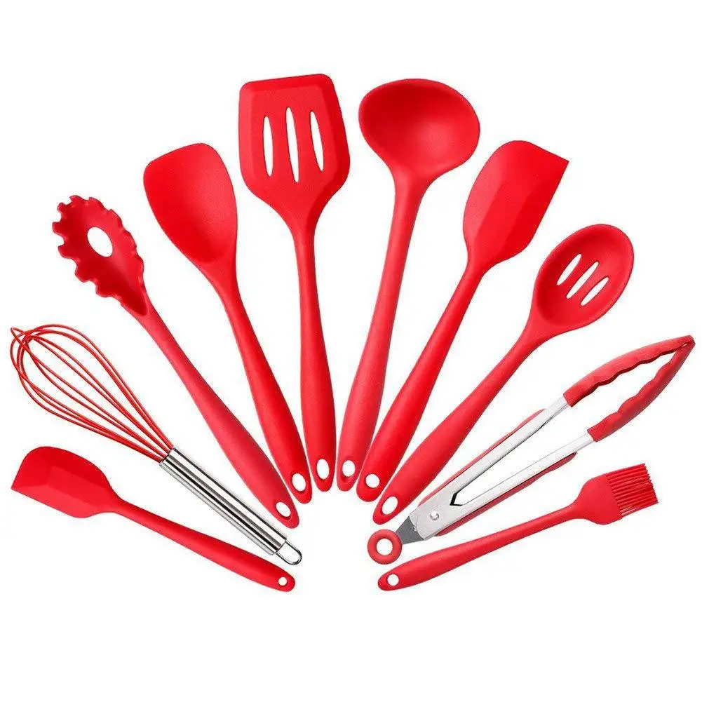 10 шт./компл., силиконовая кухонная посуда, антипригарная кухонная утварь, кухонный инструмент, лопатка, ковш, измельчитель яиц, лопатка, ложка, набор кухонной утвари