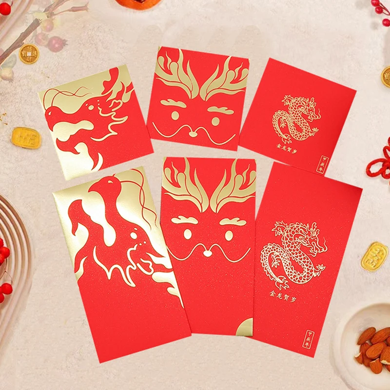 10 шт., красные конверты с надписью «Dragon Year Hongbao»