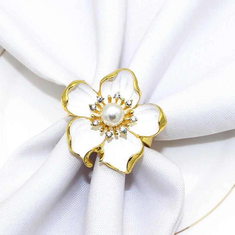10 шт./лот Новое кольцо для салфеток с пятью лепестками и цветком из сплава, белое кольцо для салфеток с цветком, украшение для свадебного стола