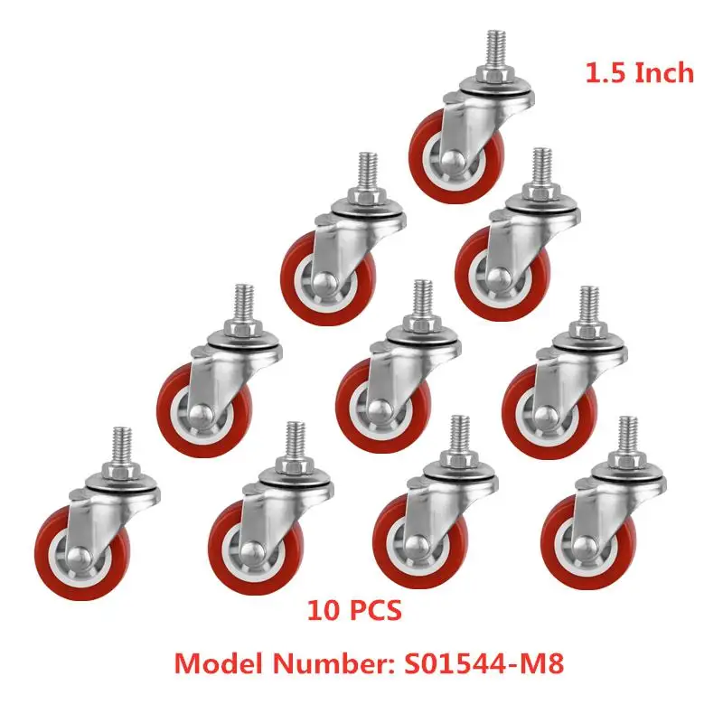 10 шт./лот, точечный 1,5 дюймовый красный винтовой ролик M8, универсальный ролик, ПВХ пластиковое колесо, стекло, механическое Резервное копирование