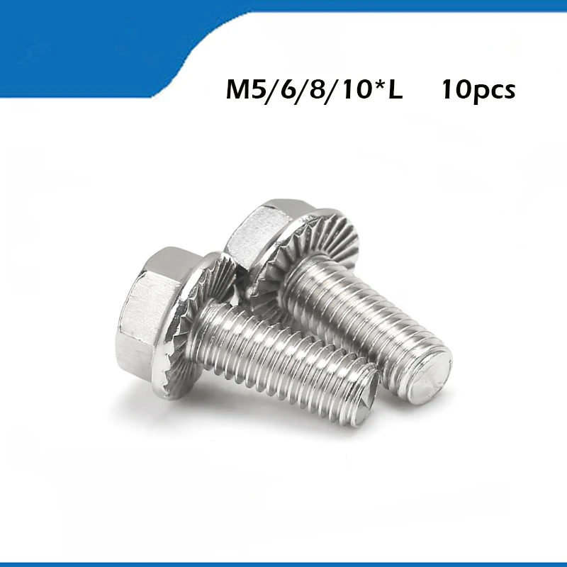 10 шт./лот M5 M6 M8 M10 Нержавеющая сталь шестигранный фланцеавой болт с зубчатым болт с фланцами