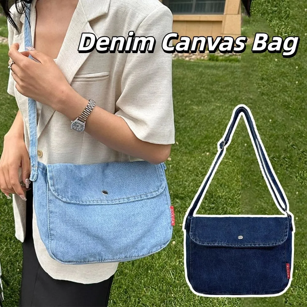 Casual Y2K Denim Canvas Bag Large Capacity Shopping Bag Vintage Handbag Solid Color Street Style Solid Crossbody Bag Streetwear