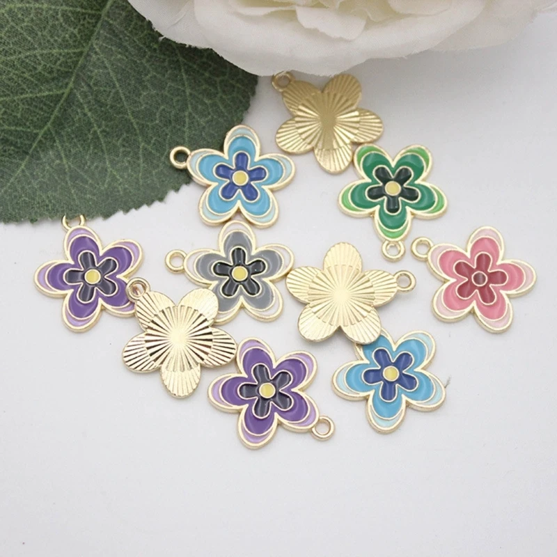 10 шт., маленькие разноцветные подвески в виде цветка с пятью лепестками
