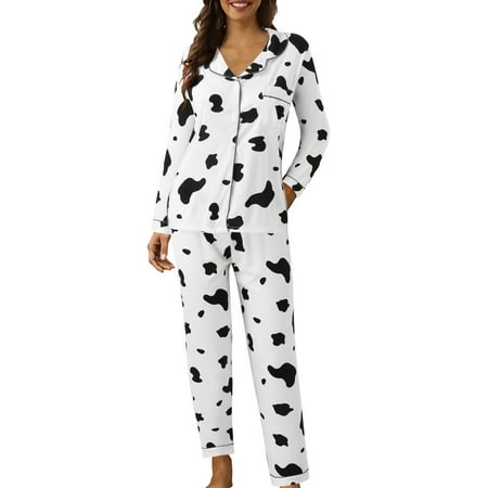 Women Sleepwear Nightwear Casual Lapel Button 2PCS Plaid Printed Long Sleeve Pajamas Suit