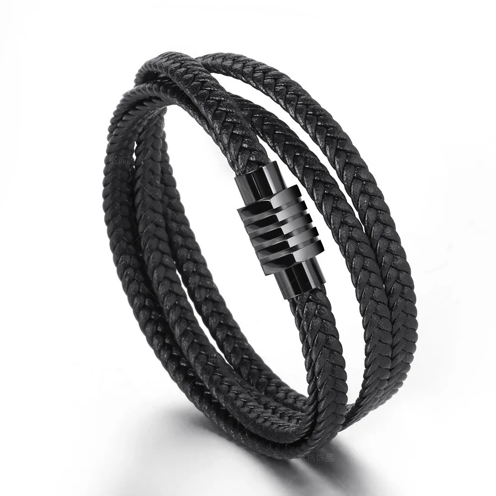10 шт./партия, модные ювелирные изделия, многослойный Плетеный черный браслет из нержавеющей стали с магнитной пряжкой для мужчин