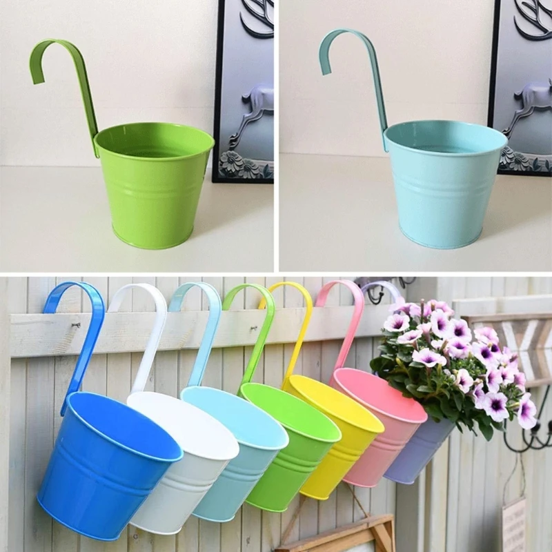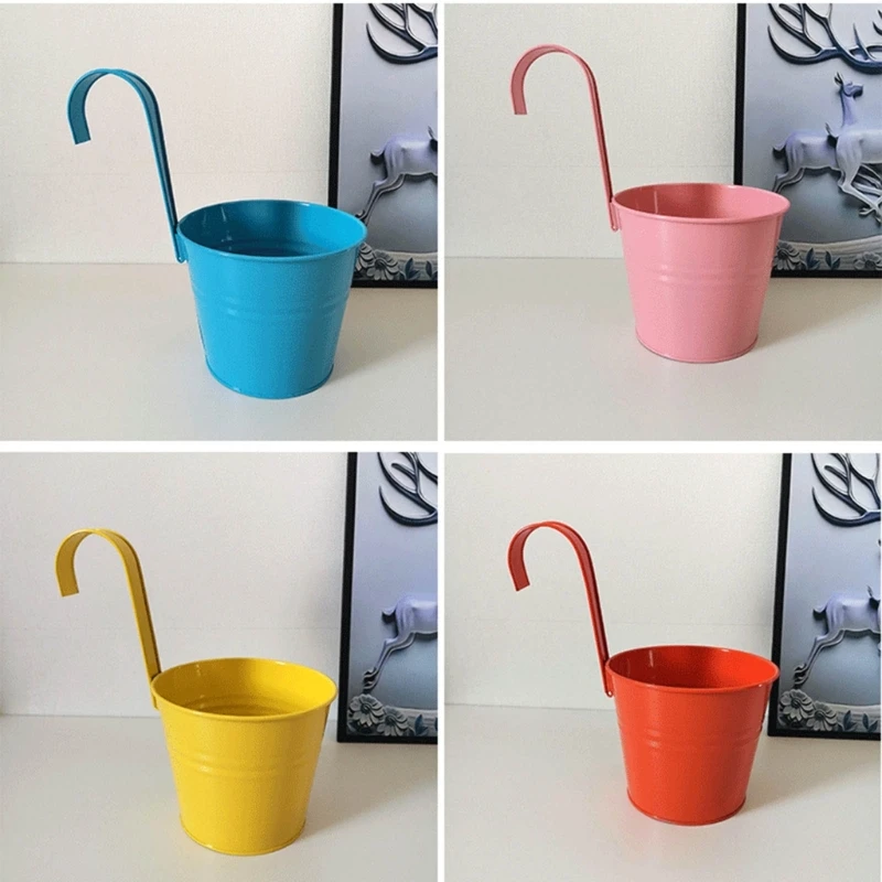 10 шт. подвесные цветочные горшки со съемным крючком, металлическое ведро для цветов для забора 45BE