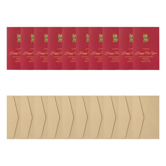 10 шт. поздравительная открытка с Новым годом с конвертом, винтажная красная элегантная золотая бумага с буквами, китайский набор карточек с благословением на 2024 год Дракона B