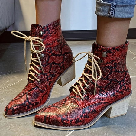 ZMHEGW Women Boots Heels Pointed Lace Up Non Slip Booties Toe Short Serpentine Hight Boots Shoes