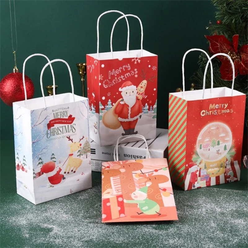 10 шт. рождественские подарочные пакеты из крафт-бумаги, рождественские пакеты с ручкой, 6 стилей, бумажные пакеты для конфет, рождественские ...