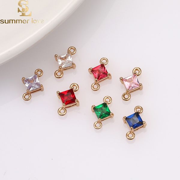 10 шт. симпатичные каваи золотой разъем квадратный кристалл подвески для изготовления ювелирных изделий красочные стекла браслет diy ожерель, Bronze;silver
