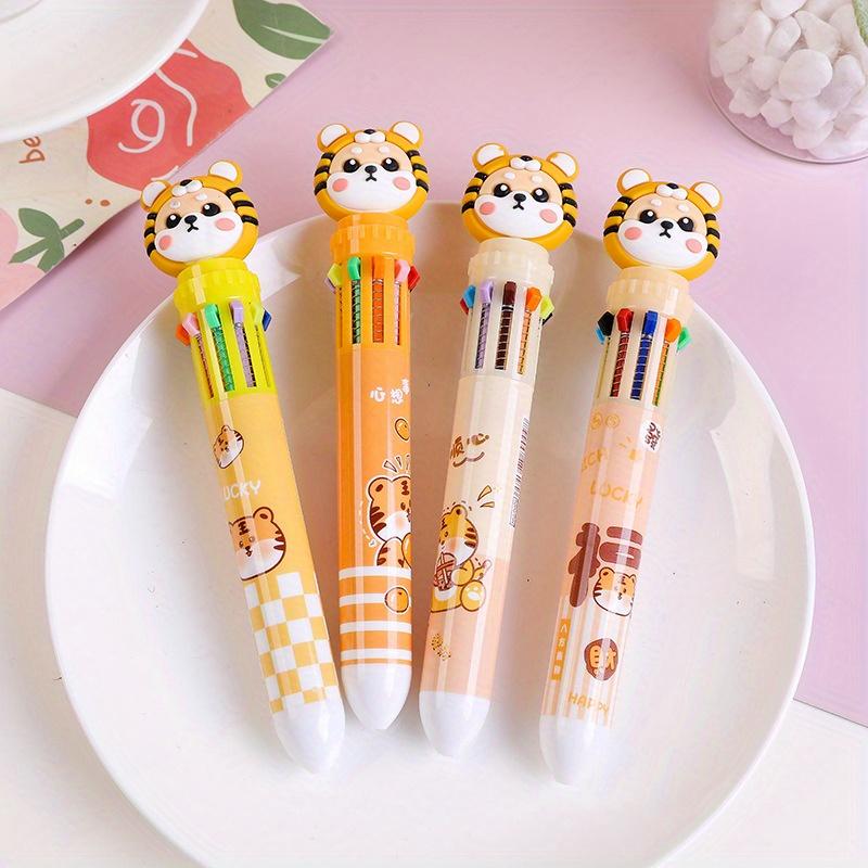 10 шт. 0,5 мм Милая маленькая тигровая десятицветная шариковая ручка ручная ручка-маркер 10 цветов мультяшная голова пресс шариковая ручка ручка для граффити Random style 10pcs