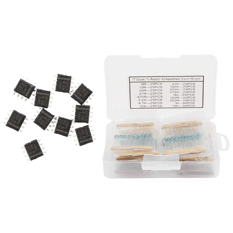 10 шт. 8-контактный IC таймер SMD NE555 с 525 шт. 1/4 Вт пленочные резисторы 0R 10R 20R 47R 22K 470R 100K 1M металлическая пленка