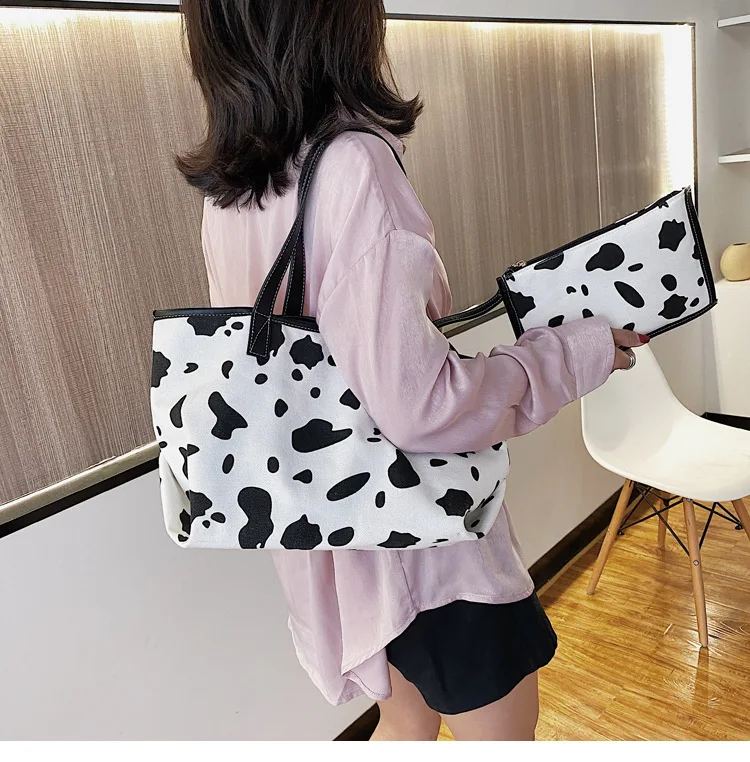 2020 women patchwork large size handbags set casual women shopping totes Cow pattern shoulder bags set drop shipping