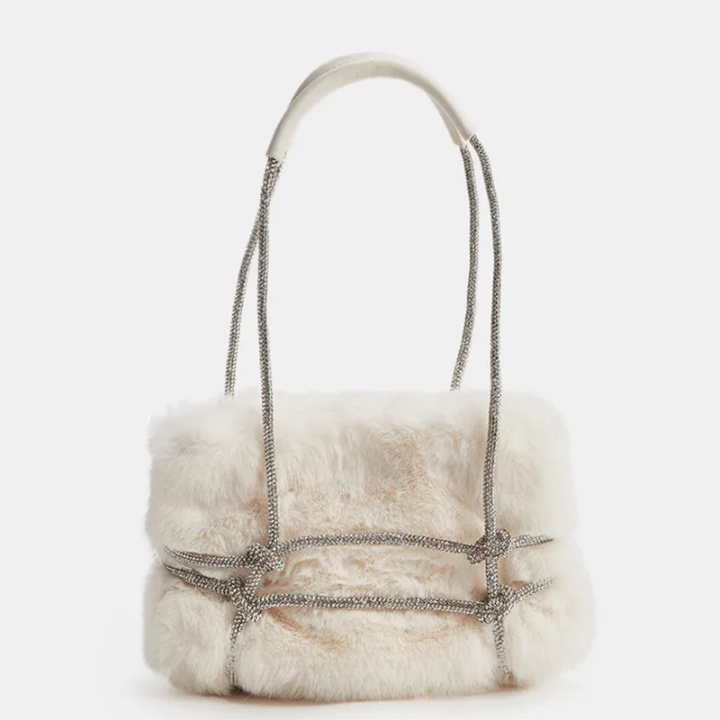 Сумка-тоут женская из искусственного меха, роскошная зимняя вместительная сумочка-тоут с подмышками, с бриллиантами