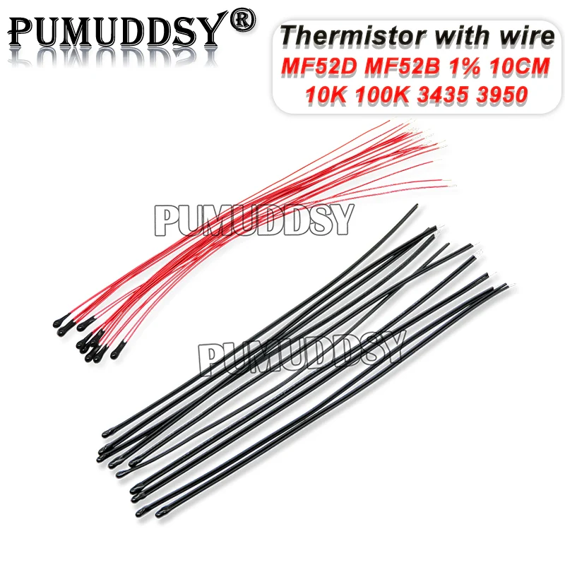 10PCS NTC Thermistor MF52B MF52D 10K 100K Probe Strap Wire hjxrhgal B3950 B3435 1% 10CM Temperature Control Sensor