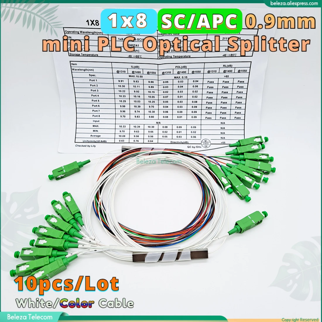 10 шт. SC/APC 1X8 PLC 0,9 мм сплиттер стальная трубка 1 м волоконно-оптический сплиттер FTTH волоконно-оптический коннектор 1*8 SC APC Бесплатная доставка