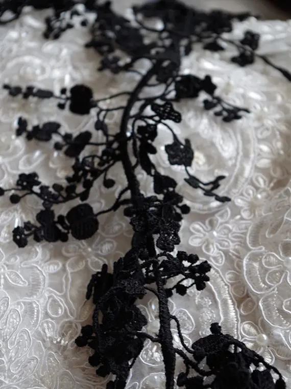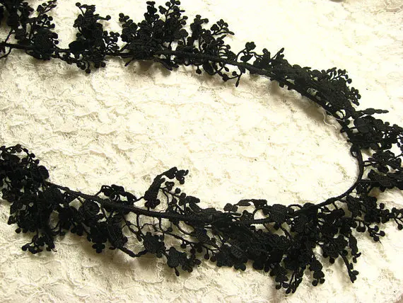 10 ярдов, Черная кружевная отделка, античное кружево, Цветочная ветка, кружево, ювелирное ожерелье, кружево, в продаже, LT001NNS